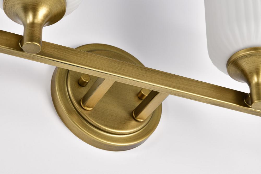 Solara; 3 Light Vanity; Natural Brass Finish; Frosted Ribbed Glass