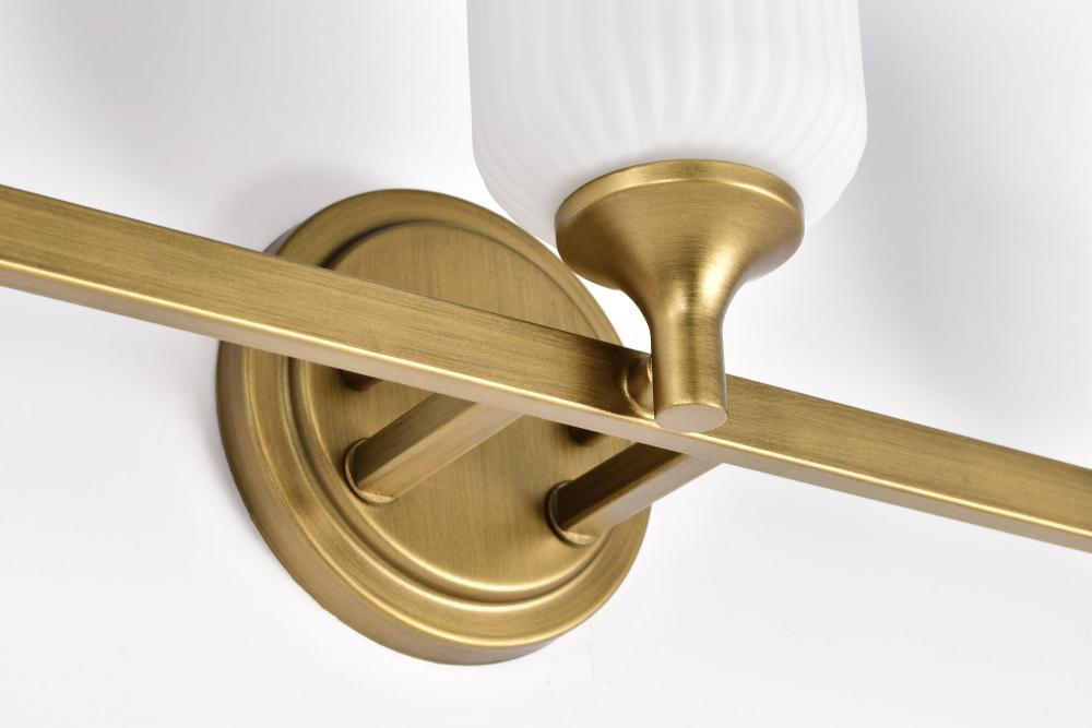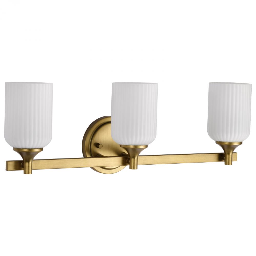 Solara; 3 Light Vanity; Natural Brass Finish; Frosted Ribbed Glass