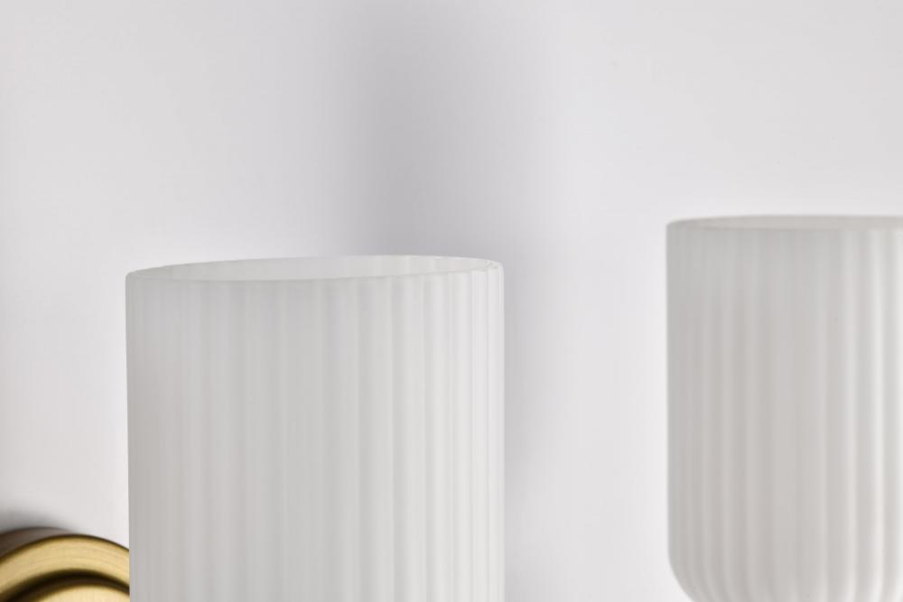 Solara; 2 Light Vanity; Natural Brass Finish; Frosted Ribbed Glass