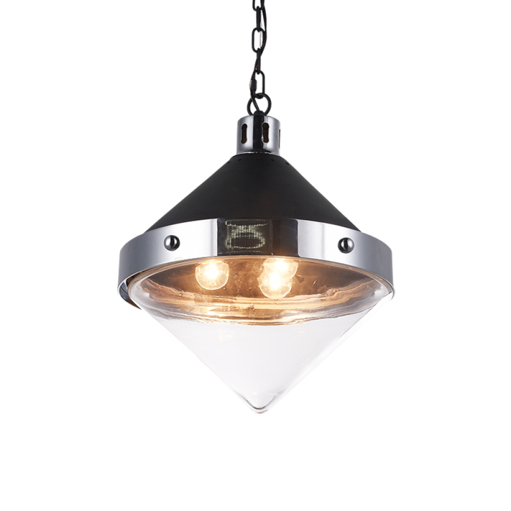 A fusion design that combines medieval style with modern elements. Sphericon is available in Matte Black with Aged Gold Brass or Matte Black with Chrome. Both colour options are complete with a clear glass shade or an opal glass shade. LIGHTBULBS NOT INCLUDED