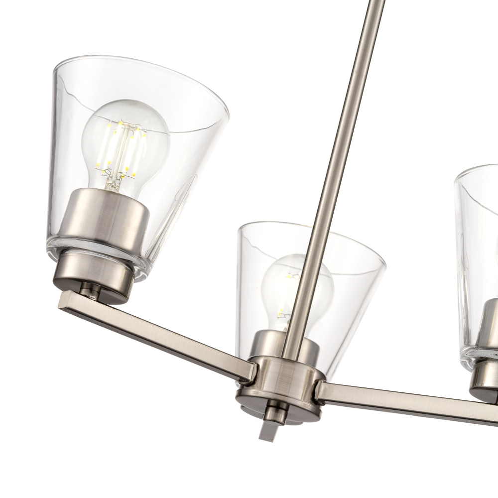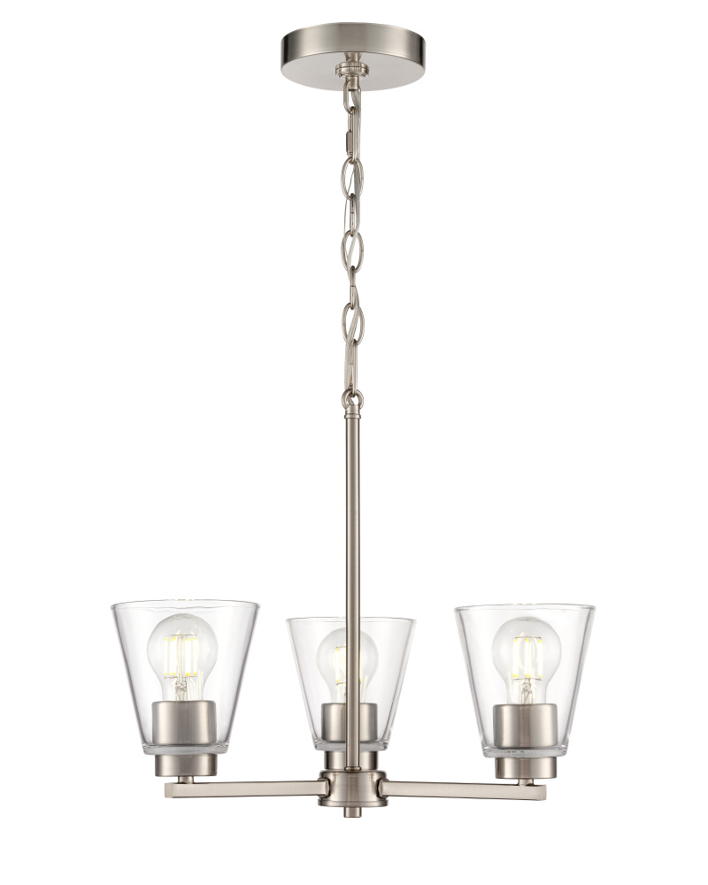 Perfectly flared crystal-clear glass shades framed against streamlined fixtures set a unique design tone for the Strayhan Family of interior lighting. Perfect for illuminating any location from the entryway on throughout the entire home, these fixtures are available as a 1-light sconce, 1-light pendant, 2-light flushmount; 1, 2, 3 and 4-light vanity; and 3, 5, and 9-light chandelier. Finished in matte black, brushed nickel, or modern gold, these understated fixtures infuse a cosmopolitan design sense into any interior space.