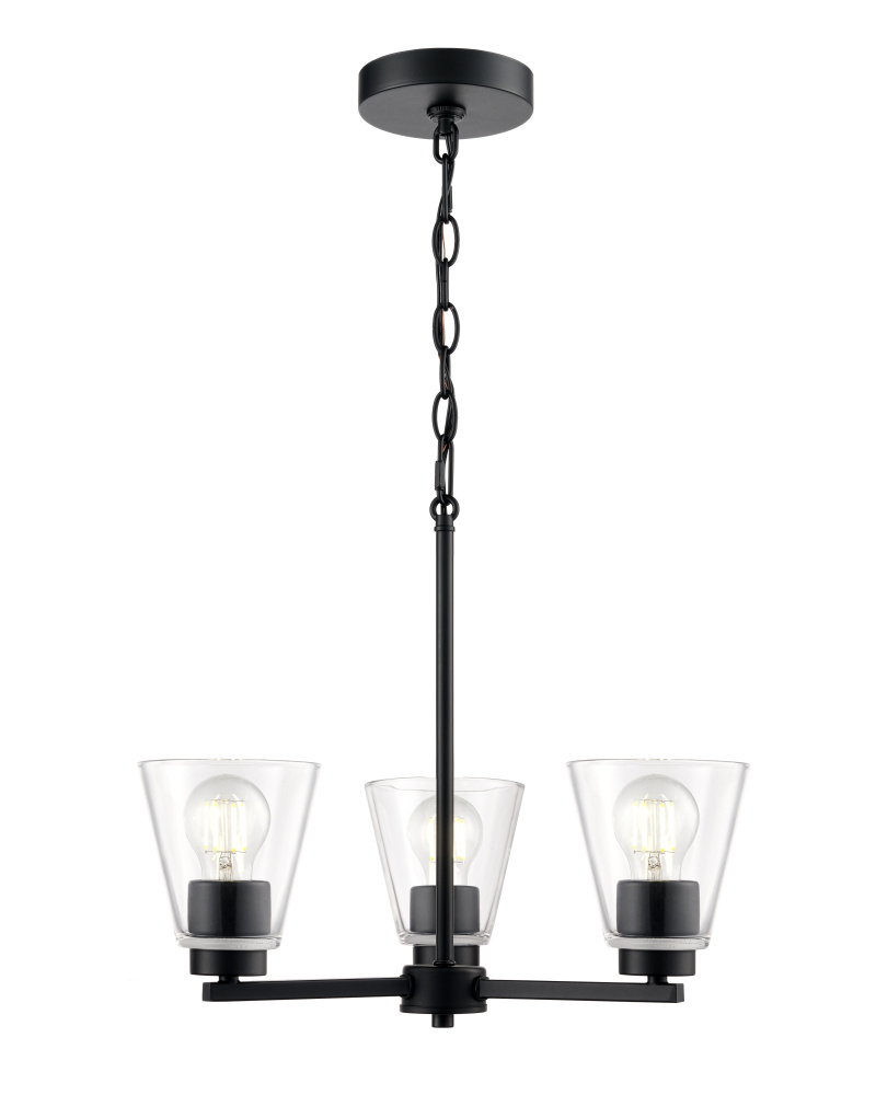 Perfectly flared crystal-clear glass shades framed against streamlined fixtures set a unique design tone for the Strayhan Family of interior lighting. Perfect for illuminating any location from the entryway on throughout the entire home, these fixtures are available as a 1-light sconce, 1-light pendant, 2-light flushmount; 1, 2, 3 and 4-light vanity; and 3, 5, and 9-light chandelier. Finished in matte black, brushed nickel, or modern gold, these understated fixtures infuse a cosmopolitan design sense into any interior space.
