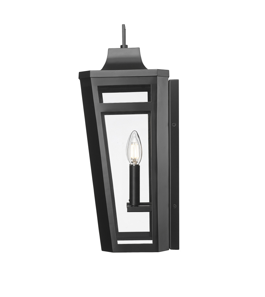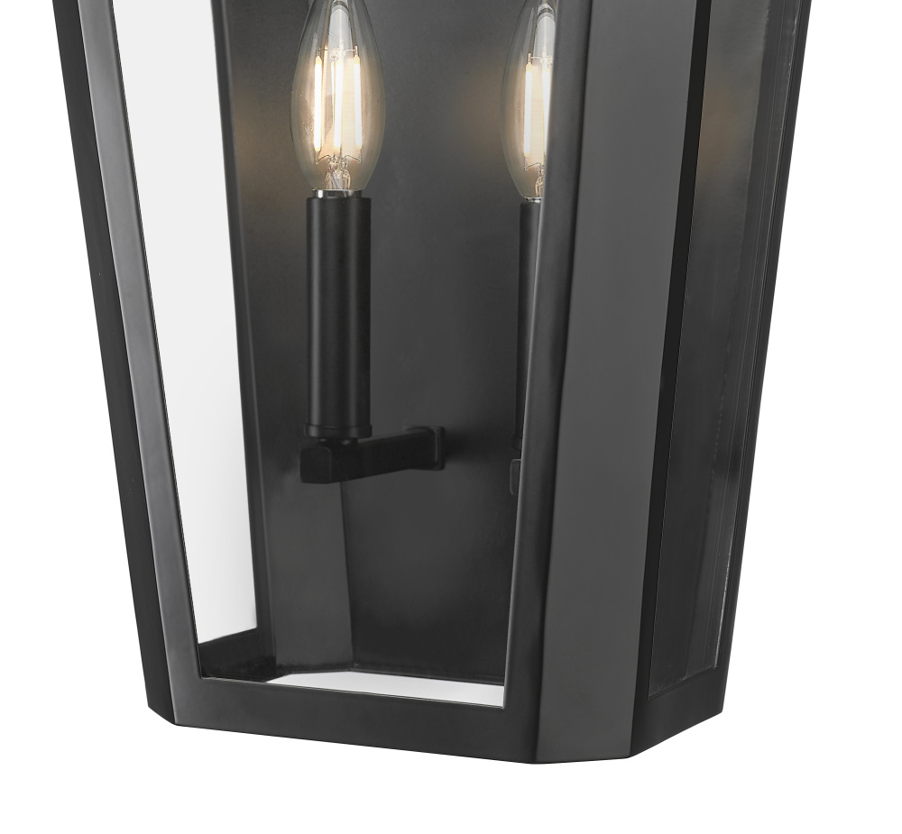 Evocative of classic French Gothic design, The Sumerlin Family of exterior lighting blends an elegant powder coat black finish with modern gold candle sleeves for a truly stunning effect. Tailored details topped with a contemporary styled finial are set against a full backplate for a truly fashionable and stately effect. Perfect for illuminating courtyards, entryways, and colonnades, these lanterns are a graceful design element for any exterior.