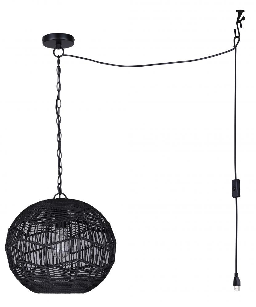 VALENCE, IPL1197A01BK, MBK Color, 1 Lt Cord Pendant, String, 60W Type A, 15inch W x 14.5inch H, 5 Feet Chain + 215inch SVT Black Cord, SWAG KIT, On-Off on the Cord