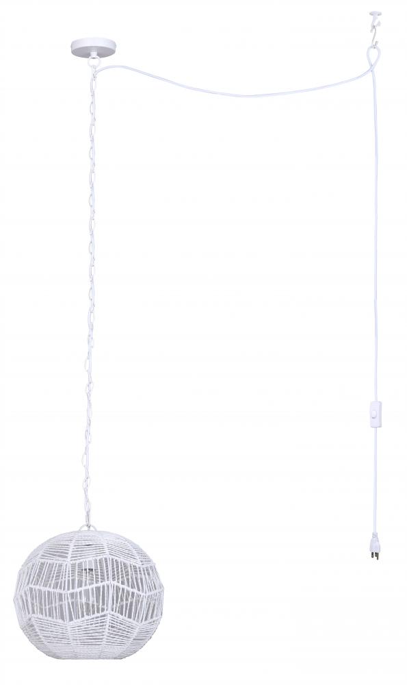 VALENCE, IPL1197A01WH, MWH Color, 1 Lt Cord Pendant, String, 60W Type A, 15inch W x 14.5inch H, 5 Feet Chain + 215inch SVT White Cord, SWAG KIT, On-Off on the Cord