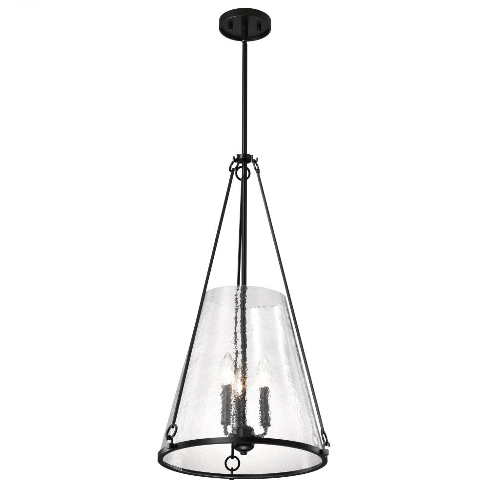 Valentine; Large Pendant; Black Finish; Hammered Glass