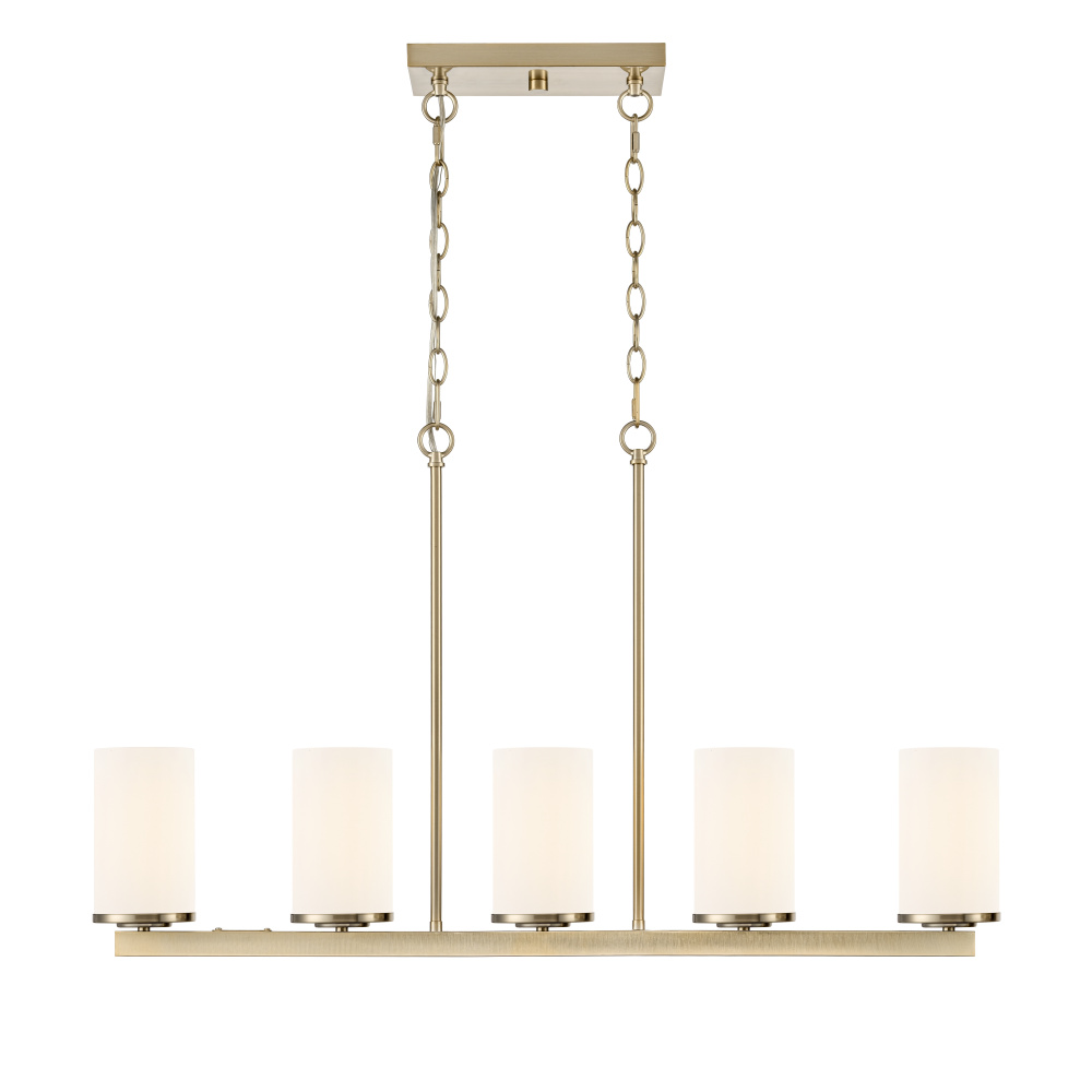 Striking industrial design springs to life with the sumptuous style of the Verlana Family creating the perfect solution for any interior from Scandinavian simplicity to Mid-Century Modern. Cylindrical shades, in clear or white glass, perfectly compliment the sleek lines of these luminaires finished in brushed nickel, chrome, matte black, or modern gold. Available as 1-light sconce, 1-light mini pendant; 2, 3, or 4-light vanity, 2-light semi-flush mount, 5-light island; or 3 or 5-light chandelier, these splendid fixtures set a sophisticated tone for any interior scheme.