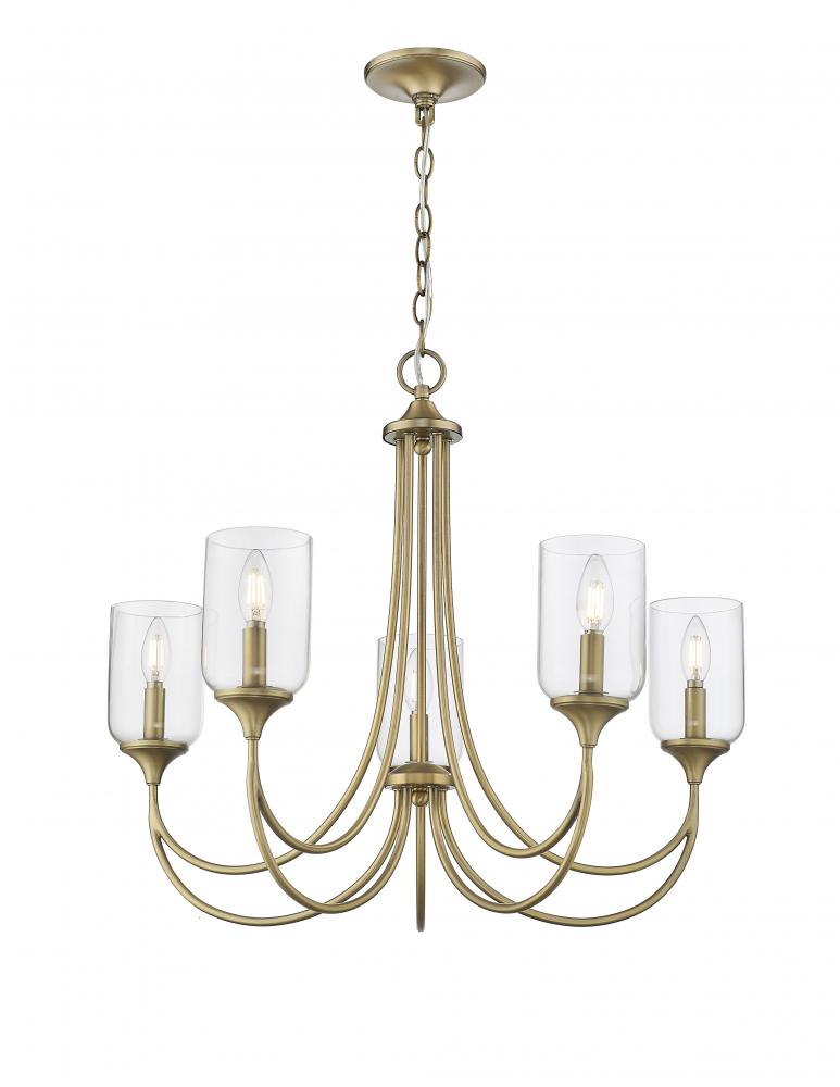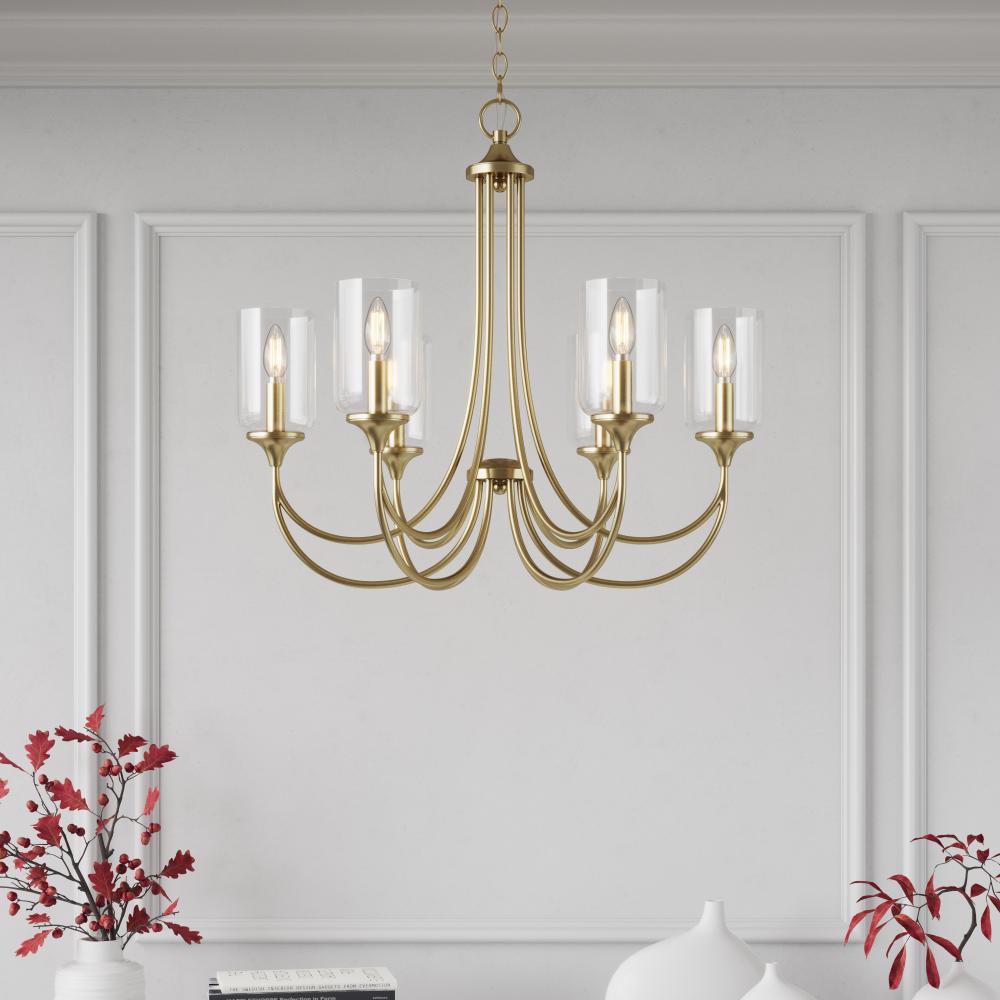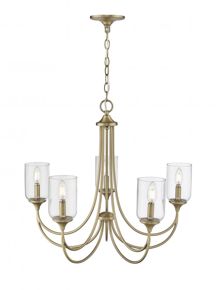 The Waddingham Family of chandeliers is the definition of refined elegance. Available as either a 5- or 9-light option, these chandeliers add understated charm to any space from foyer to dining room. With sweeping arms and sparkling clear glass shades, these tasteful fixtures, finished in either matte black or vintage brass, are the perfect design solution for modern to classic interior schemes.
