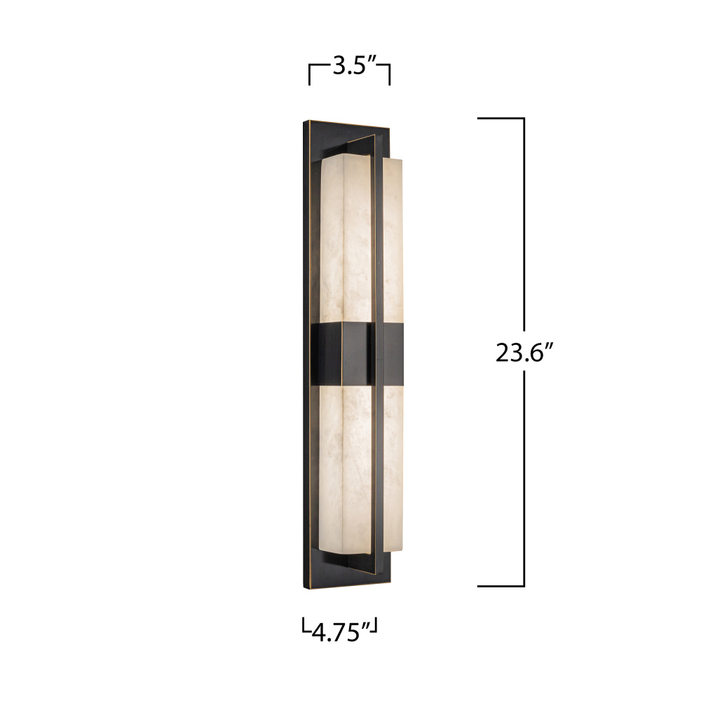 The Briana Collection wall sconce exudes elegance with its authentic alabaster lens, softly diffusing light through its radiant bronze frame. Designed for versatility, it features a 3CCT switch, allowing you to tailor the ambiance with your preferred color temperature (2.7K, 3K, or 4K). Whether mounted vertically or horizontally, this sconce creates a timeless allure, blending sophistication with modern functionality.