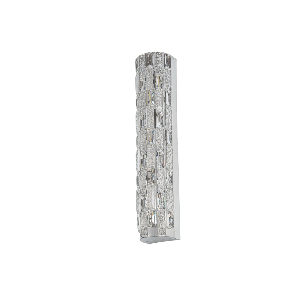 Glistening like a crown of starlight, this LED crystal wall sconce from the “Elegance” collection offers a breathtaking harmony of luxury and functionality. Its polished nickel frame embraces a dazzling array of crystals, while the 3CCT switch allows you to tailor the ambiance with warm, neutral, or cool light (3K, 4K, 5K). This model can be mounted vertically or horizontally.